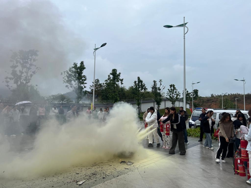 在模拟学生公寓突发火情的演练中,随着消防警报响起,模拟烟雾迅速弥漫楼内。各楼层学生在辅导员、公寓管理员及安全员的引导下,用湿毛巾捂住口鼻,弯腰低姿,沿预定路线快速、有序撤离。整个过程仅用3分40秒,1370名师生全部安全抵达指定集结区。随后,在室外空旷区域开展了消防器材实操培训,专业人员详细讲解了干粉灭火器的构造、使用方法,并演示了“提、拔、握、压”四字操作要领。师生认真观摩后踊跃参与,分批进行实战灭火,进一步巩固了消防技能。